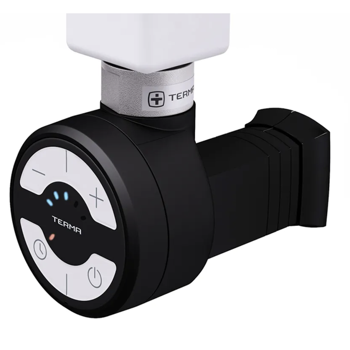 Présentation de Sèche serviette électrique Fiona NOIR 9M5 E8 800W 1620x500 + kit SOA, câble sans fiche, équipé cache fil.