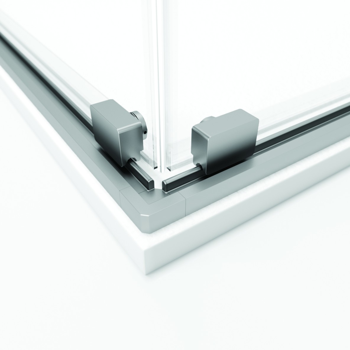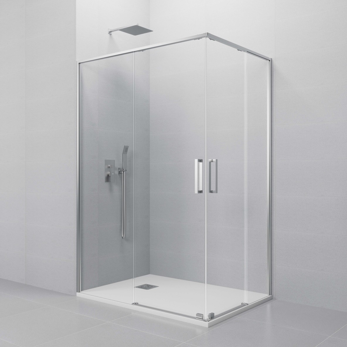 Une hauteur de 195cm, parois coulissantes en accès d'angle d'une épaisseur de 6mm, réversible, avec un croisement allant de 1 à 6cm.