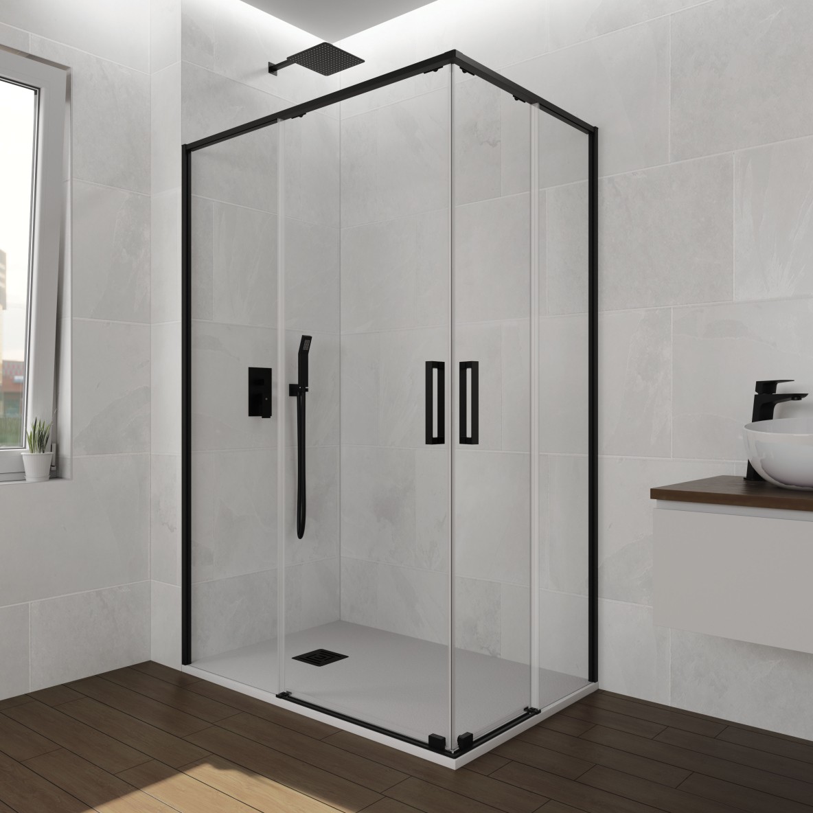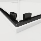 Une hauteur de 195cm, parois coulissantes en accès d'angle d'une épaisseur de 6mm, réversible, avec un croisement allant de 1 à 6cm.
